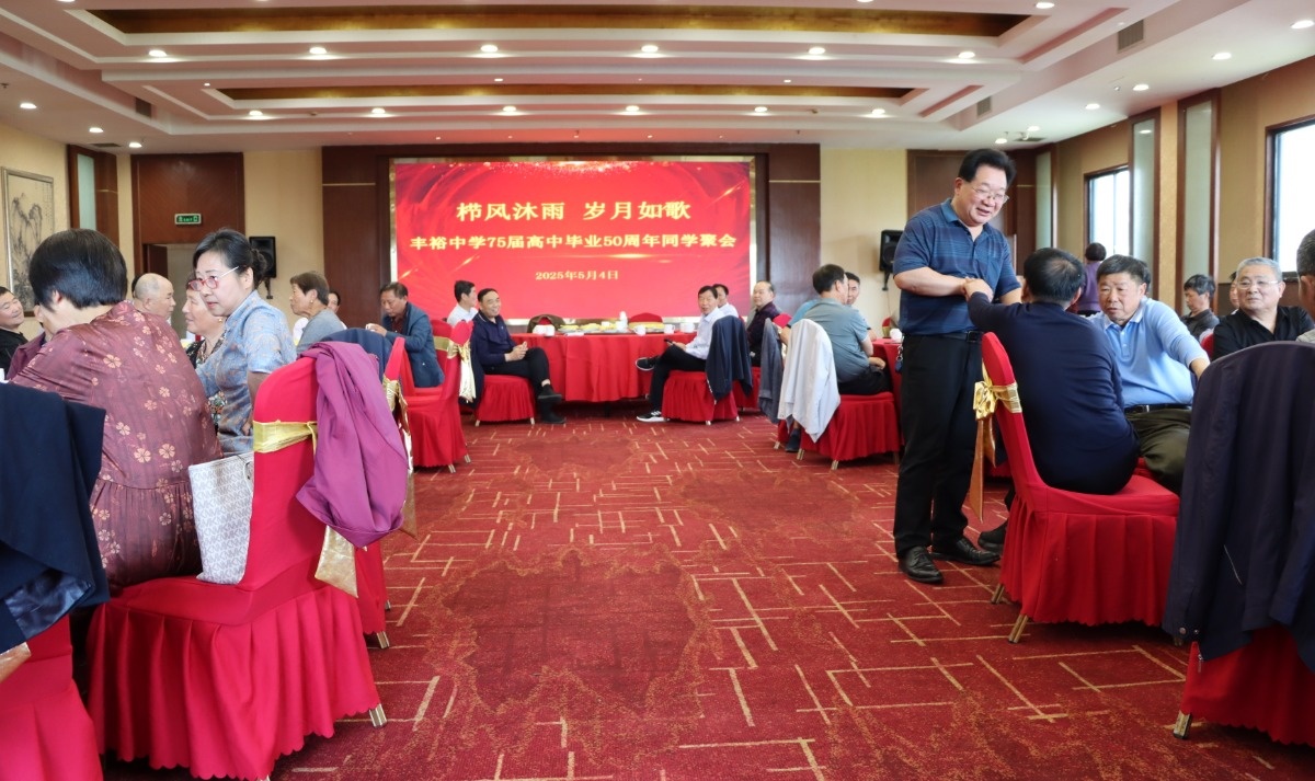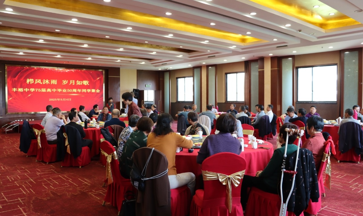 奋斗是青春最亮丽的底色。“现在青春是用来奋斗的,将来青春是用来回忆的”,随着“五四”青年节的到来,习近平总书记的亲切话语又回响在耳边。5月4日上午,一场跨越半个世纪的重逢,在长江大酒店三楼群英厅温情上演。丰裕中学1975届40多名毕业生从四面八方赶来,共赴高中毕业50周年同学聚会,重拾青春记忆,共话岁月深情。