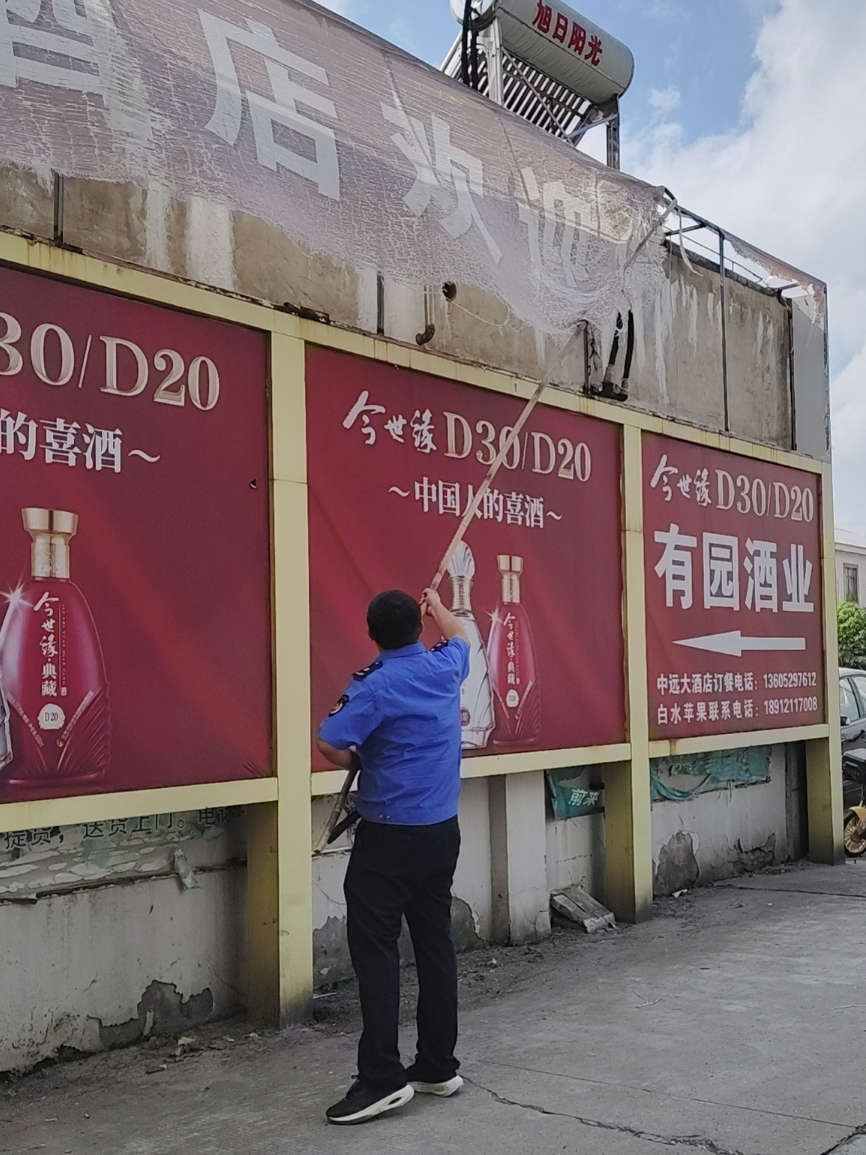 针对逾期未整改的违规广告设施,市城管局集中推进,启动助拆帮拆行动。行动中,执法人员严格落实安全规范,设置警戒区域,利用高空作业车、切割设备等专业器械,对违规楼顶、落地和墙体户外广告及招牌设施进行集中整治。4月份以来,已拆除违规广告牌15块,拆除面积约300平方米。