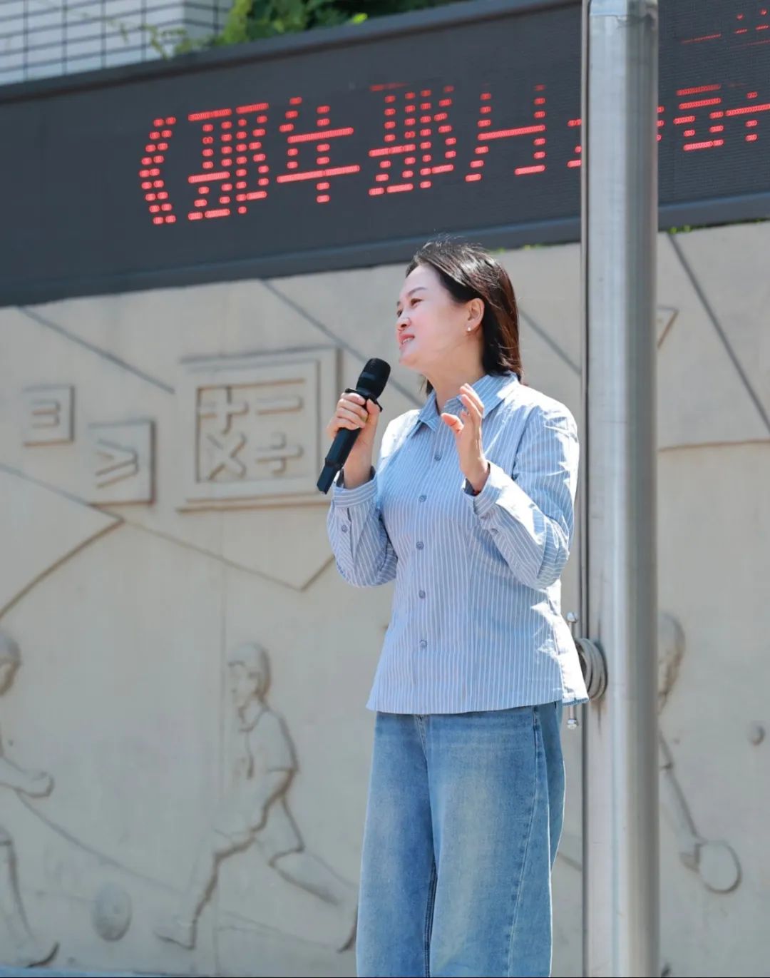 教师代表左蓓蕾在发言中为《那年那月那群人》作出独特注解。她说:“每个扬中人的行囊里,都该装着前辈的勇气。”这句话印证着教育工作者在文化传承中的独特价值——他们正以教育智慧为薪柴,做新时代的追光者,让历史深处的精神火种,照亮少年前行的道路。